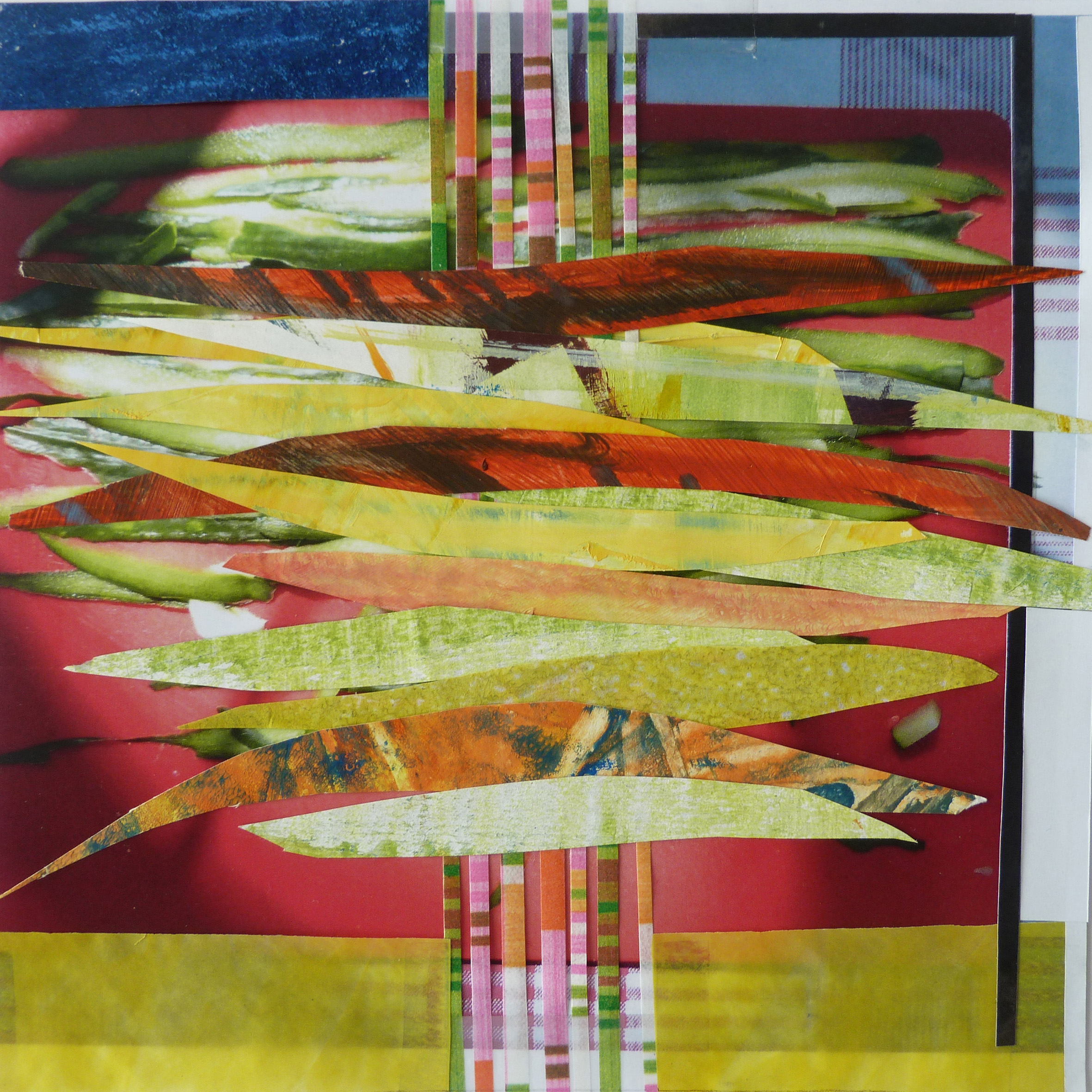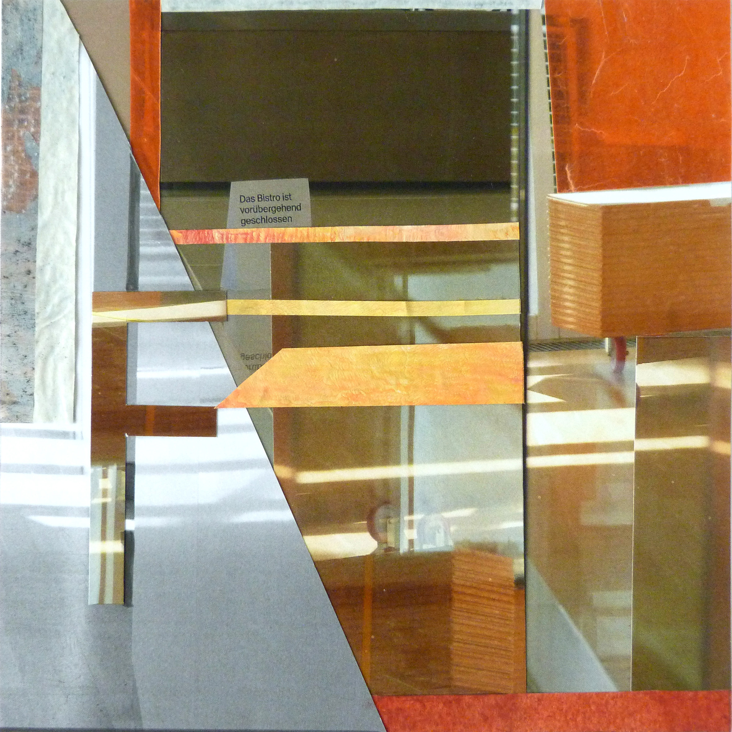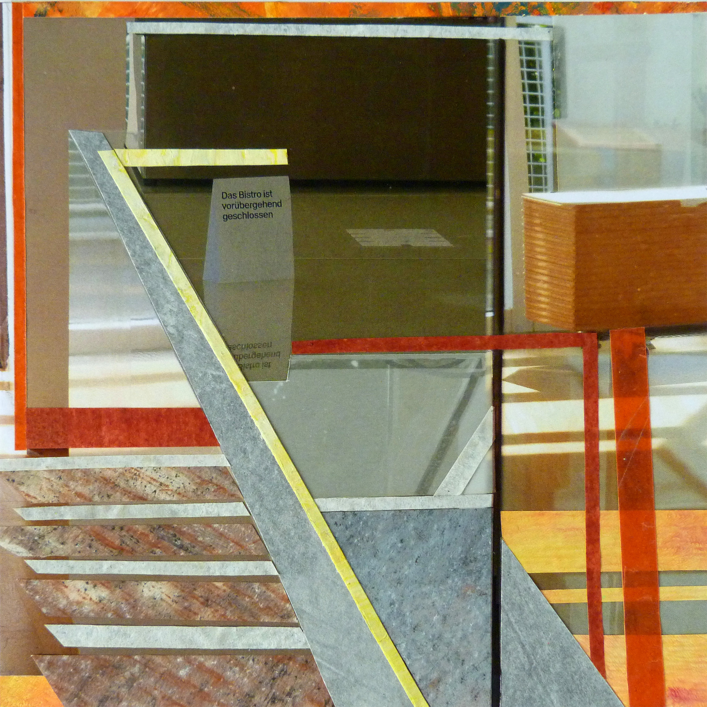 Ausgegangen bin ich von jeweils zwei farbigen Ausdrucken desselben Motivs, allerdings von meist unterschiedlichen Ausschnitten. Ich reagierte auf die Motive durch Überklebungen mit Fragmenten meiner umfangreichen „biographischen“ Papiersammlung, deutete sie um, verfremdete sie. So entstanden Collagen von poetischer Klarheit.