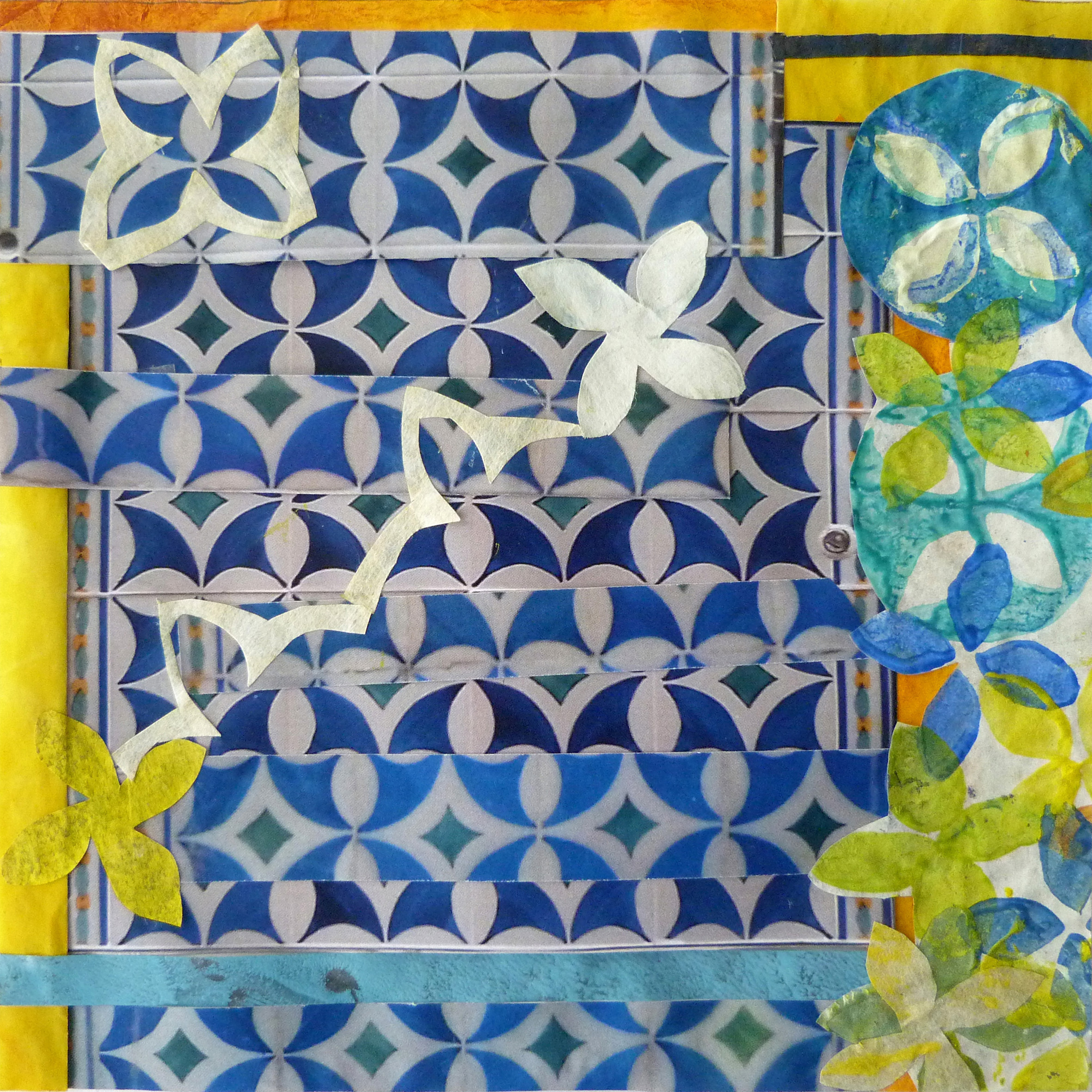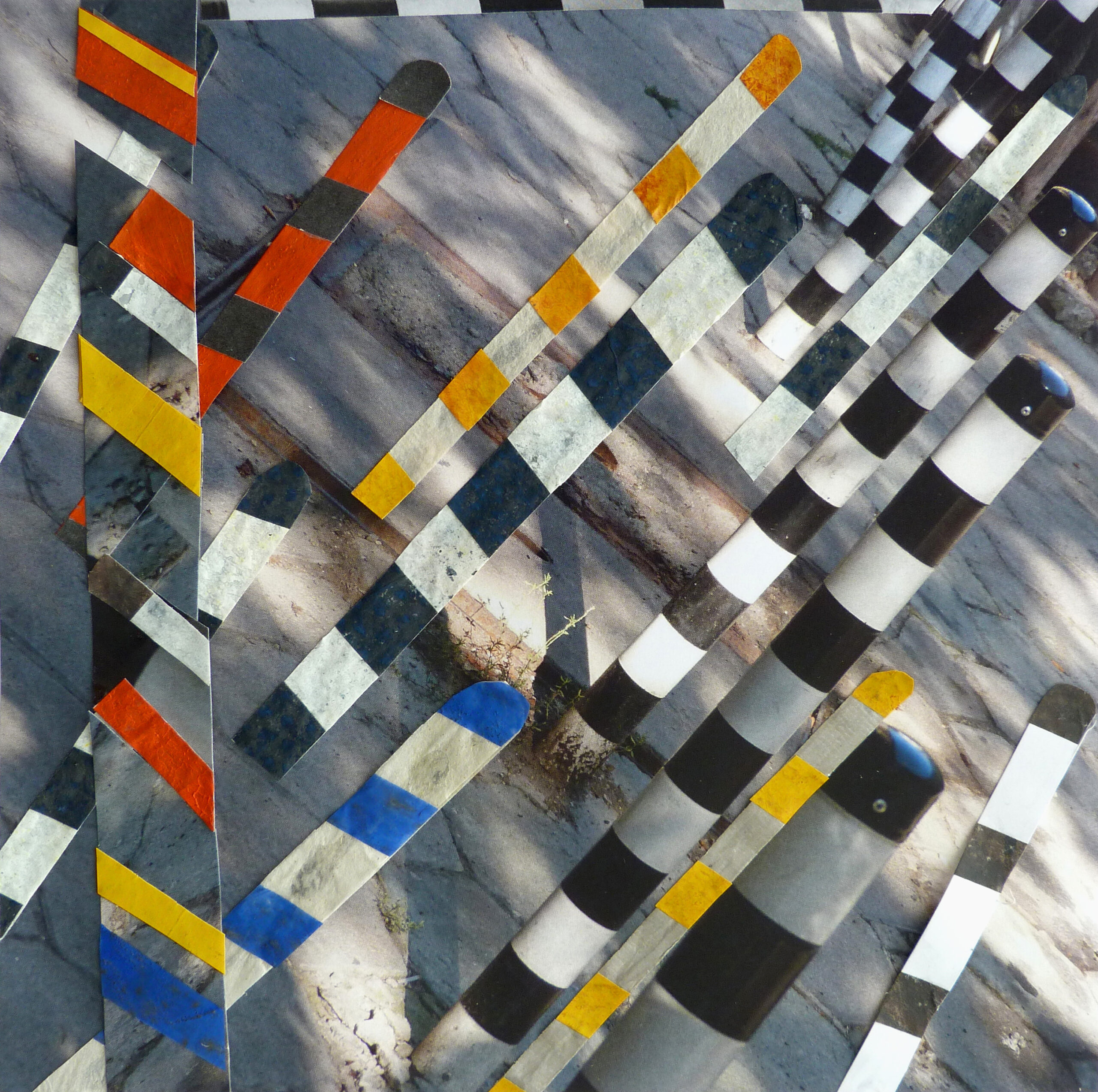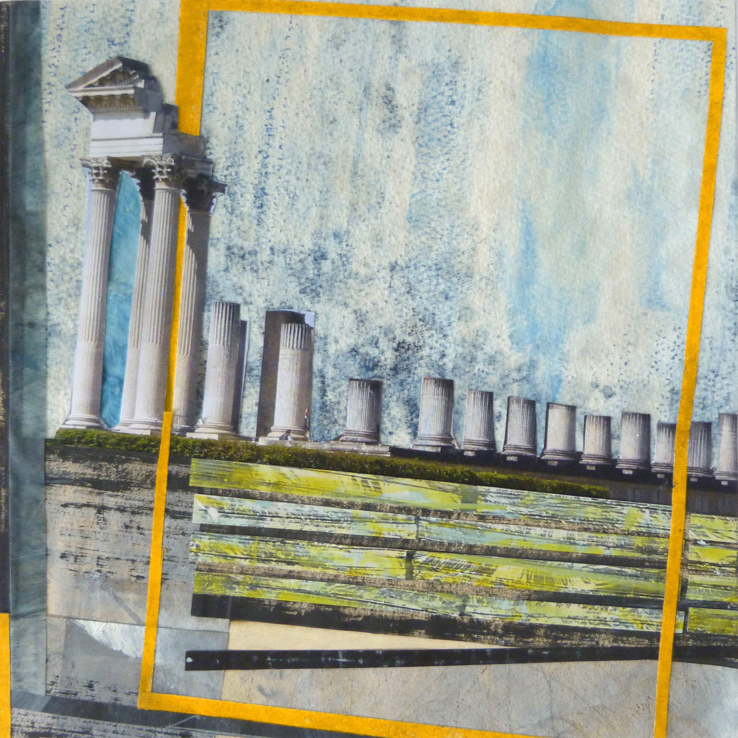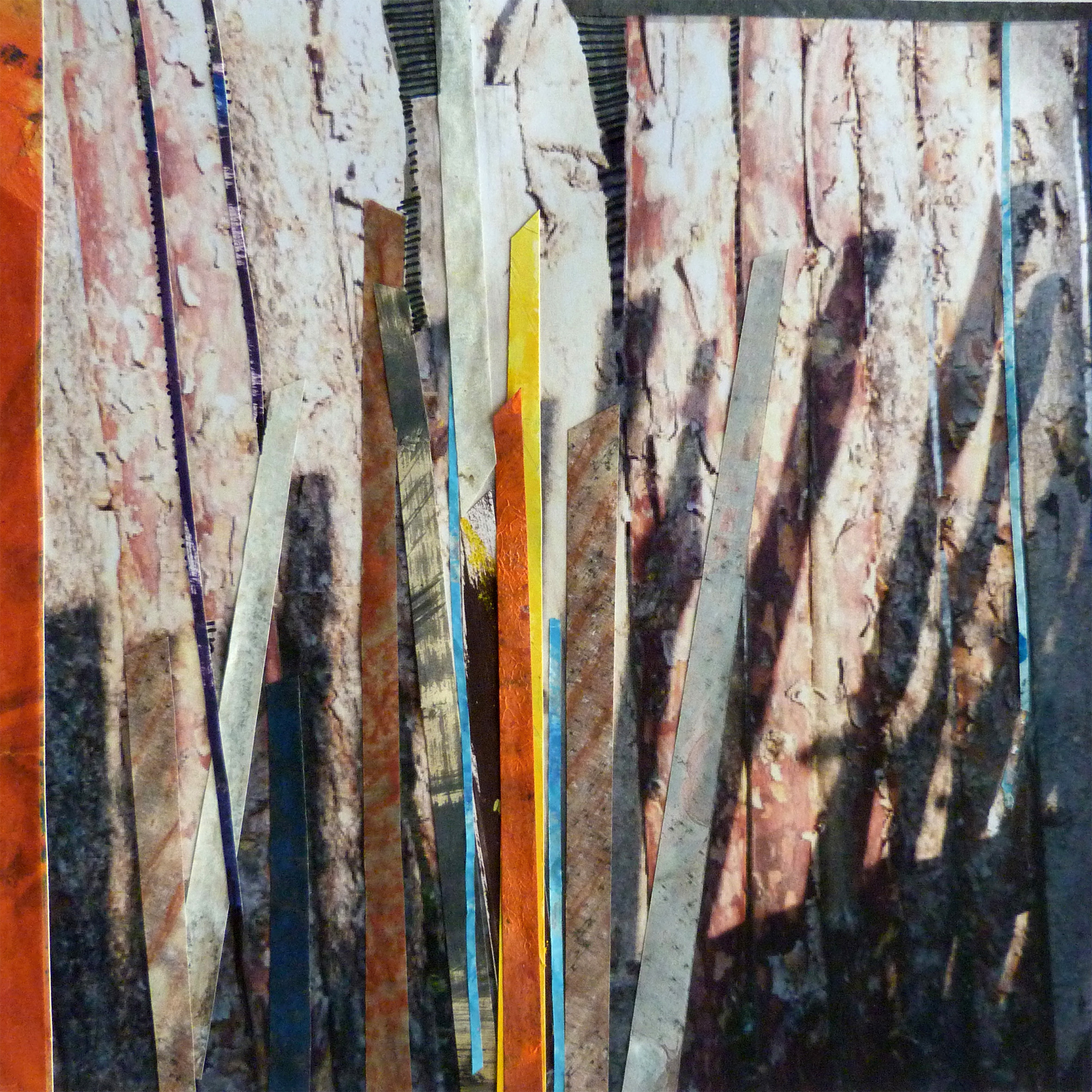Ausgegangen bin ich von jeweils zwei farbigen Ausdrucken desselben Motivs, allerdings von meist unterschiedlichen Ausschnitten. Ich reagierte auf die Motive durch Überklebungen mit Fragmenten meiner umfangreichen „biographischen“ Papiersammlung, deutete sie um, verfremdete sie. So entstanden Collagen von poetischer Klarheit.