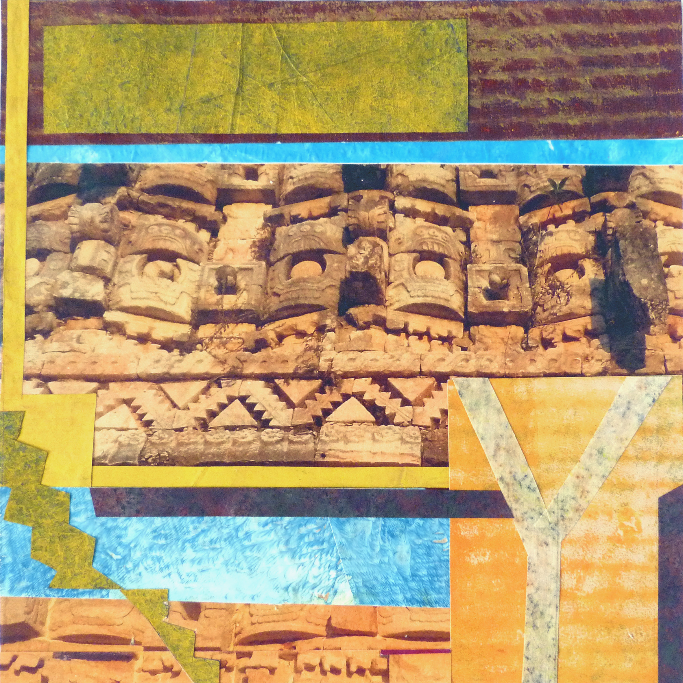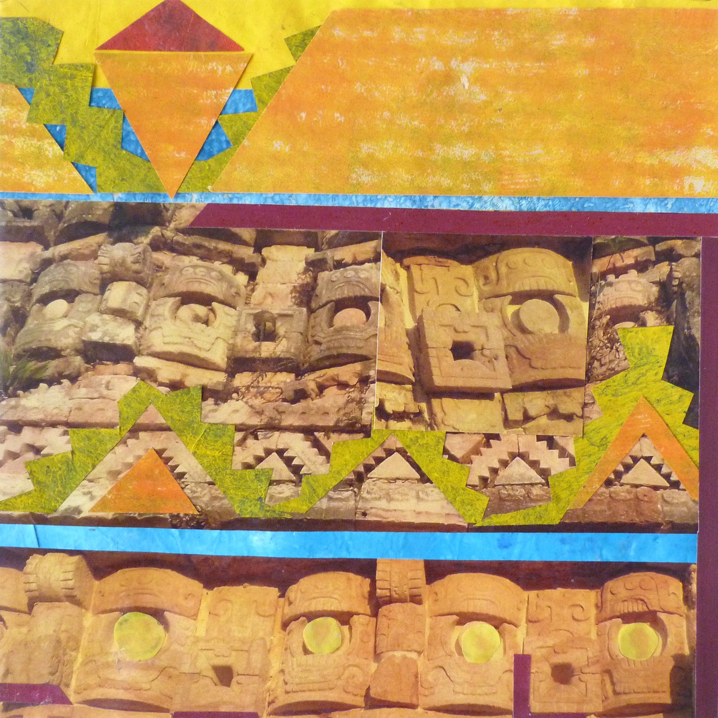 Die Göttergesichter an einem der vielen Maya-Tempel in Yukatan, Mexiko.