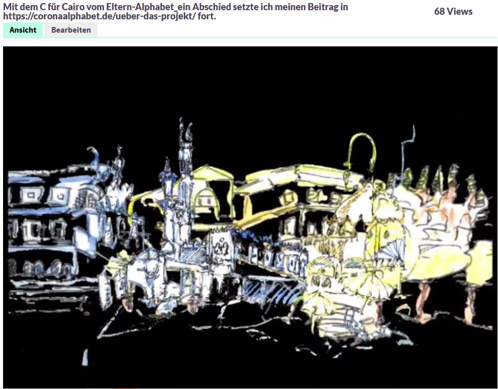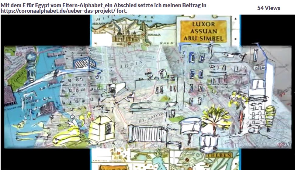 Meine Eltern, Architekten, Jahrgang 1923 sind leidenschaftlich viel gereist. Ein Wandregal voller Alben habe ich nach ihrem Ableben geerbt und diese mit eigenen Zeichungen und Bilder meiner Reisen zu diesen Orten verbunden. Vieles hatte sich dort verändert, z.B. gab es keine Miniröcke und viele Kopftücher. Dieses Reisealphabet ist ein Angebot zur Teilhabe an fernen und teilweise verschwundenen Welten. Die Musik stammt vom Lieblingskomponisten meiner Mutter: Chopin.